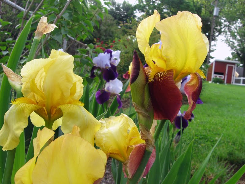 A few iris that we transplanted last summer, plus the fence sans any pickets. A lot of the flowers in the yard were so over grown that they did not bloom last year. Greg and I thinned and moved what feels like hundreds of flowers. It was so fun to watch what colors the flowers have been.