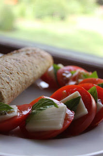 And in related cooking news...my kitchen is undergoing reno, and is barley functional =( So, we are eating simple food like tonight's salad (or, feeding D&R as payment for using their grill and kitchen). But, who can really get sick tomato, basil, and mozz?